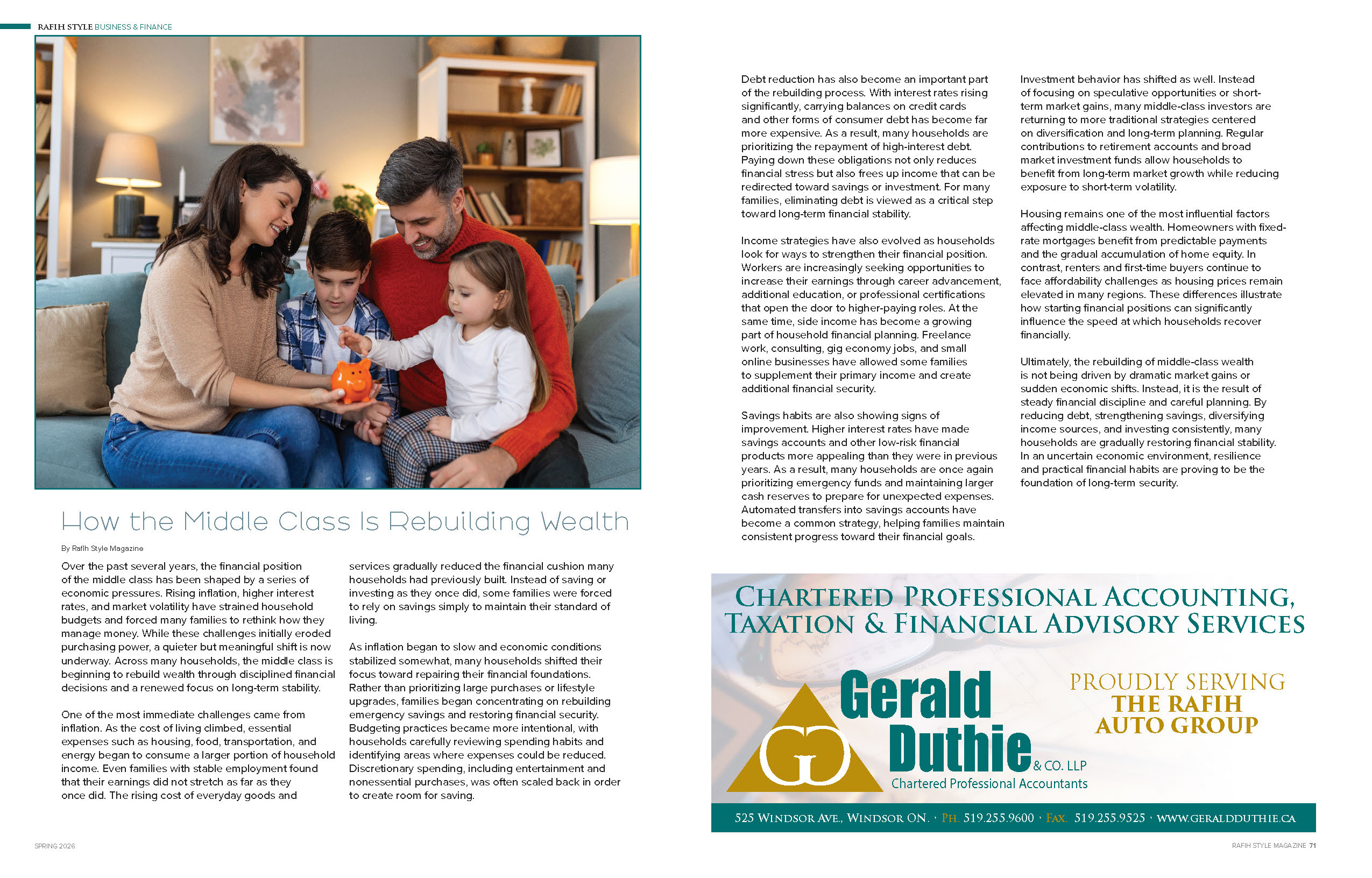 Rafih Style Magazine gives readers a taste of Southwestern Ontario culture. The publication also includes first-rate articles about lifestyle, luxury, finances, travel, the finest in food, and the latest in automotive that transcend this specific geographical location.